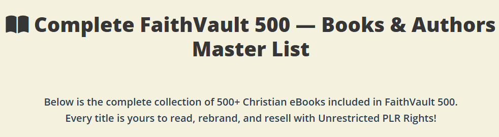 So when FaithVault 500 w/ Unrestricted PLR entered the market—offering 500+ Christian books, journals, devotionals, and spiritual content—it immediately stood out.